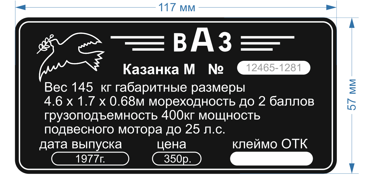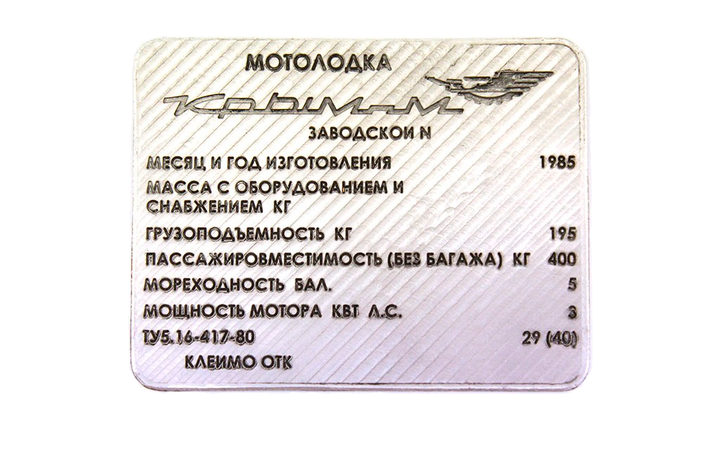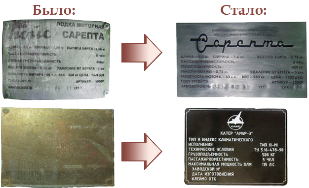 Изготовление по образцу заказчика шильдиков для маломерных судов.